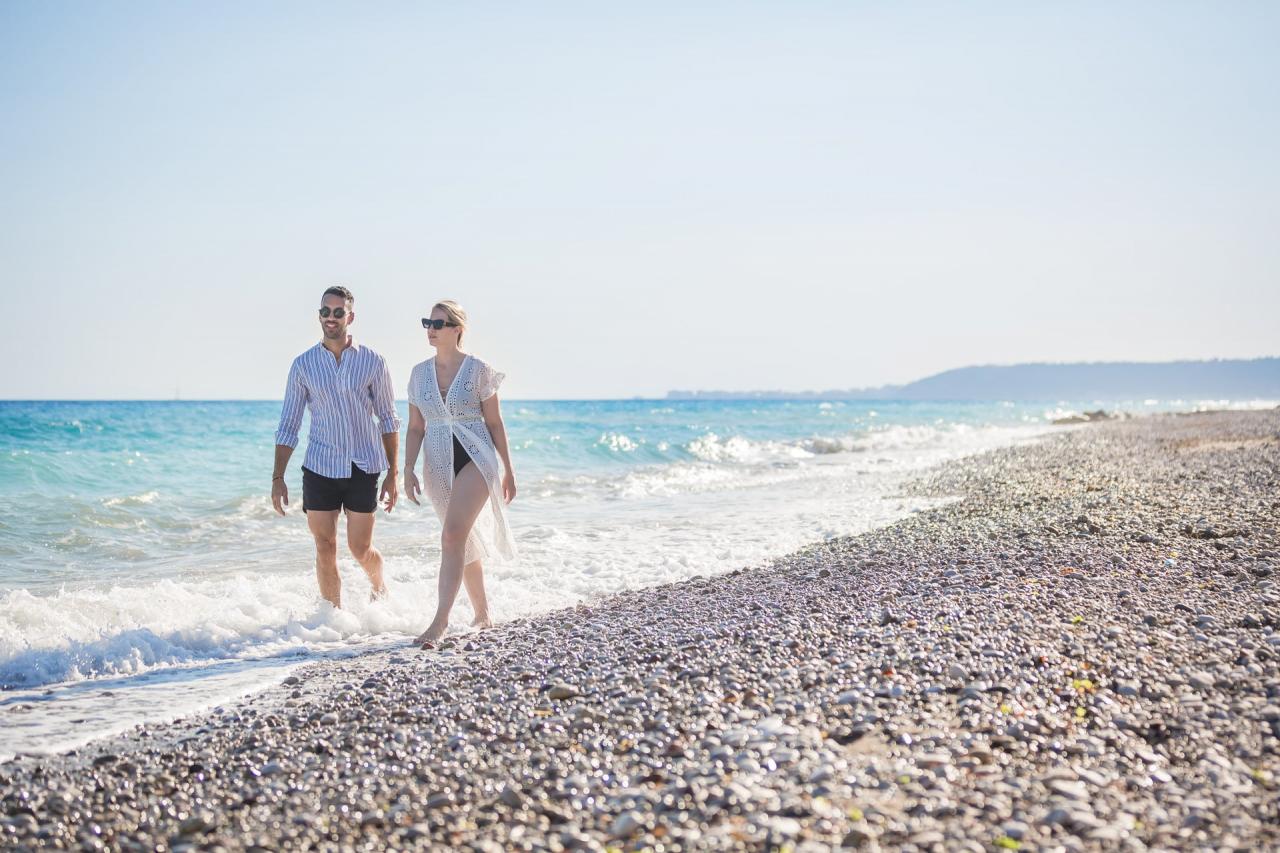 Első megállónk az Antony Quinn strand smaragdzöld vizénél lesz, ahol a "Navarone ágyúi" című filmet forgatták. Itt lehetőségünk lesz egy 30 perces fürdésre vagy snorkelezésre. A következő megállónk Lindos-öbölben lesz, itt több, mint 2 óra áll rendelkezésünkre, felfedezhetjük a falut, vagy pihenhetünk Rodosz szigetének egyik legszebb és leghíresebb homokos partján. Aki szeretné, felkeresheti az Akropoliszt is (a kirándulás ára a belépődíját nem tartalmazza). Visszafelé Tsambika-öbölben állunk meg egy 30 perces úszásra.