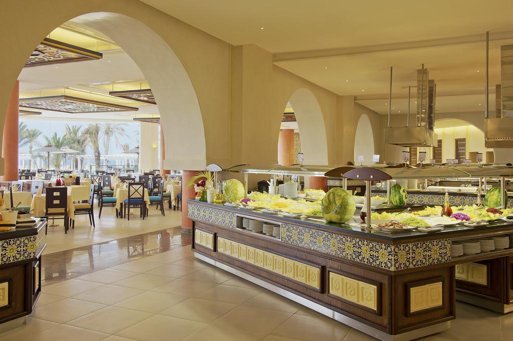 All inclusive ellátással foglalható, mely tartalmazza a büféjellegű reggelit, ebédet, vacsorát és a helyi alkoholos- és alkoholmentes italok fogyasztását. Térítés ellenében a vendégek a szálloda a’la carte éttermében is étkezhetnek, Medence melletti bár, Didon bár és arab kávézó áll a vendégek rendelkezésére.