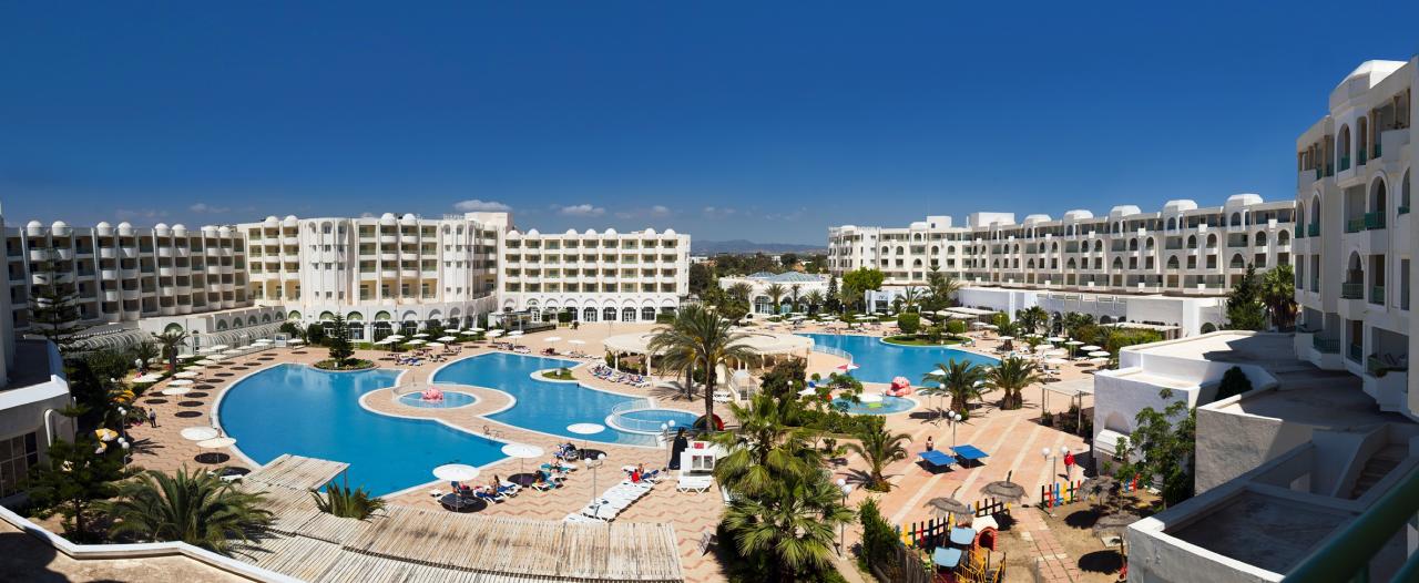 A szálloda Hammamet újonnan kiépített üdülőövezetében, a kellemes, barátságos hangulatú Yasmine Hammamet központjában, a kikötőtől kb. 700 méterre található. A homokos tengerparttól csupán egy út választja el. A monastiri repülőtértől 110 km-re (kb. 1 óra 20 perc transzferidő) helyezkedik el.