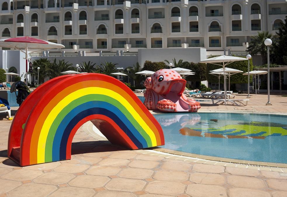 All inclusive ellátással foglalható, mely tartalmazza a reggelit, késői reggelit, ebédet, vacsorát, valamint a helyi alkoholos- és alkoholmentes italokat. Minden ital műanyag pohárban kerül felszolgálásra. Napközben snackételeket és édességet kínálnak. A szálloda több bárral és egy mór kávézóval rendelkezik, utóbbiban térítés ellenében vízipipa kérhető. Az a'la carte étteremben heti egy alkalommal, előzetes foglalást követően ingyenes vacsora fogyasztható. Palackos víz kb. 2 TND ellenében kérhető.